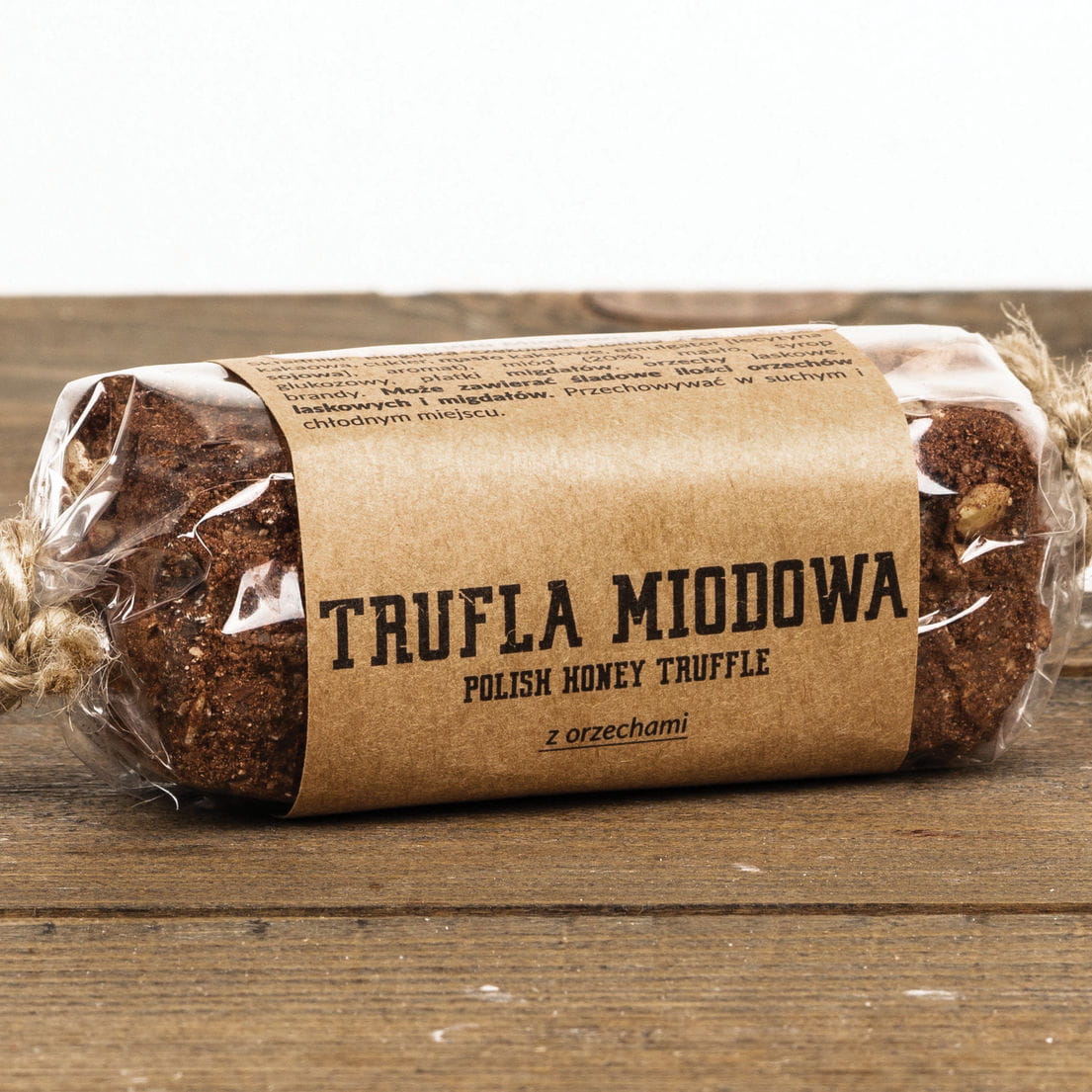 Sposób przyrządzenia: Miodowa Trufla z orzechami to doskonałe rozwiązanie na wieczorki z bliskim, podawana w oprawie owoców i wykwintnego alkoholu świetnie zaspokoi Wasze kubki smakowe, można podawać ją w asyście owoców cytrusowych.