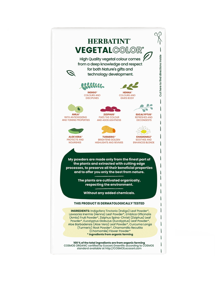JAK UŻYWAĆ: zastosowanie VEGETAL COLOR jest niezwykle komfortowe i skuteczne. Jest łatwy do zmieszania (brak grudek), nałożenia i spłukania. Wymieszaj puder z letnią wodą w misce (niemetalowej), aż do uzyskania kremowej konsystencji. Na 50 g pudru potrzebujesz 150 ml wody. Nałóż na umyte, odsączone ręcznikiem włosy. Do nakładania użyj pędzla lub dłoni zabezpieczonych rękawiczkami. Pozostaw na 60-90 minut. Dokładnie spłucz włosy i wysusz. Nie używaj żadnego szamponu. Możesz nałożyć odżywkę bez silikonu. Odczekaj 48 h przed pierwszym umyciem szamponem, ponieważ kolor w tym czasie się stabilizuje. Więcej na: www.herbatint/vegetalcolor