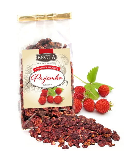 Prosty skład: Opakowanie zawiera 100% suszonych owoców poziomki.