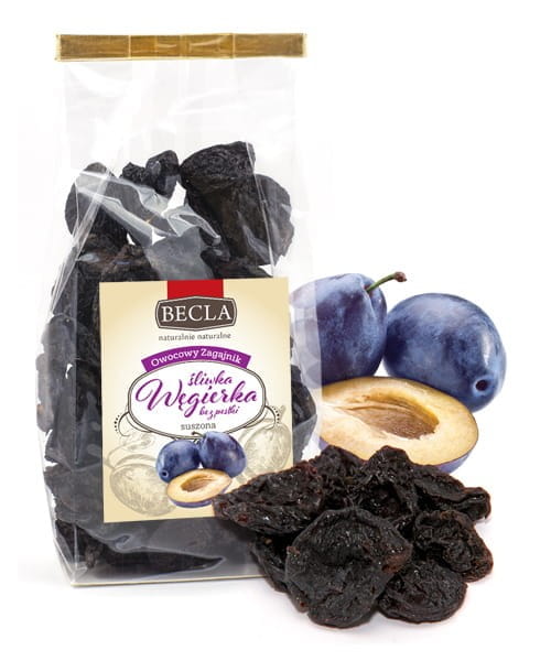 Prosty skład: Opakowanie zawiera 100% suszonych owoców śliwki węgierki bez pestki. Nie zawiera żadnych dodatków, polepszaczy smaku czy konserwantów.