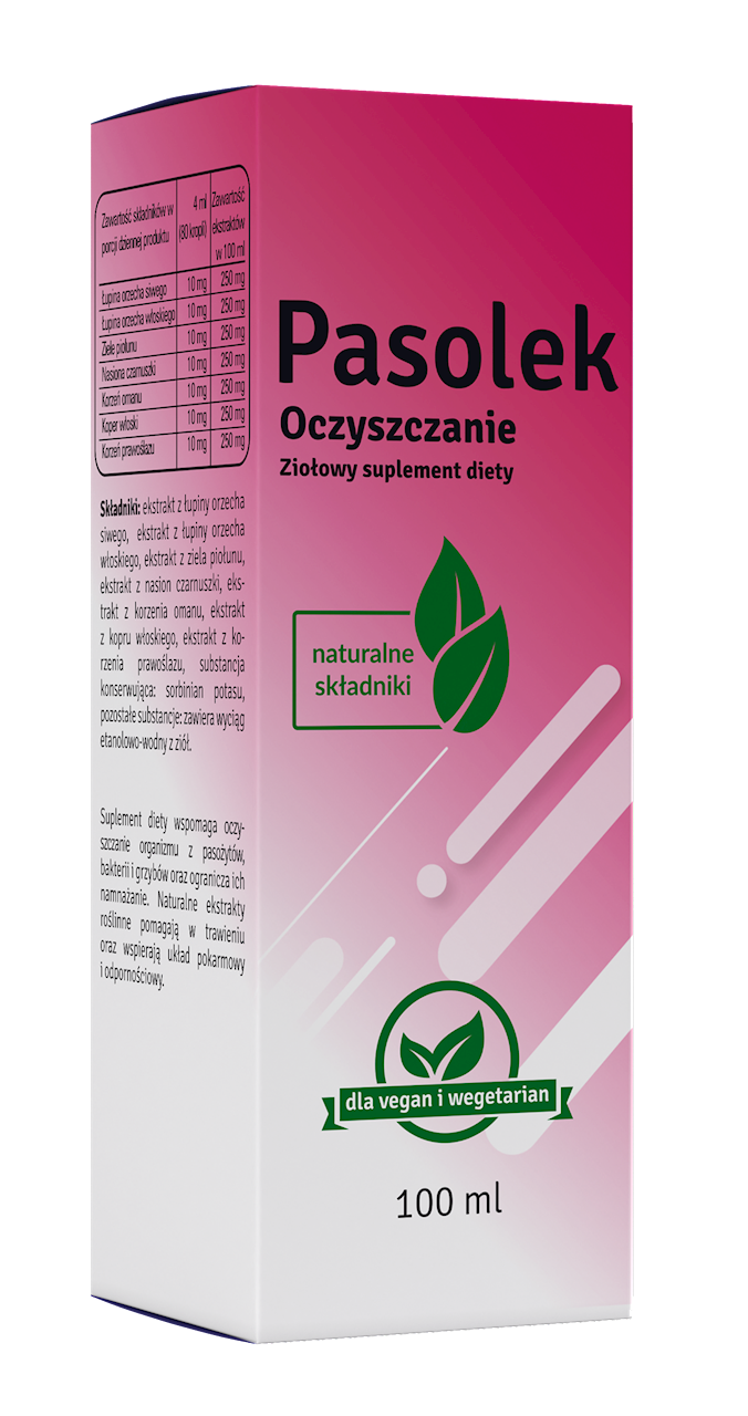 ekstrakt z łupiny orzecha szarego, ekstrakt z łupiny orzecha włoskiego, ekstrakt z ziela piołunu, ekstrakt z nasiona czarnuszki, ekstrakt z pestek dyni, ekstrakt z kopru włoskiego, ekstrakt z korzenia prawoślazu, ekstrakt z goździków, substancja konserwująca: ekstrakty z rozmarynu (wyciągi z rozmarynu), pozostałe substancje: zawiera wyciąg etanolowo-wodny z ziół